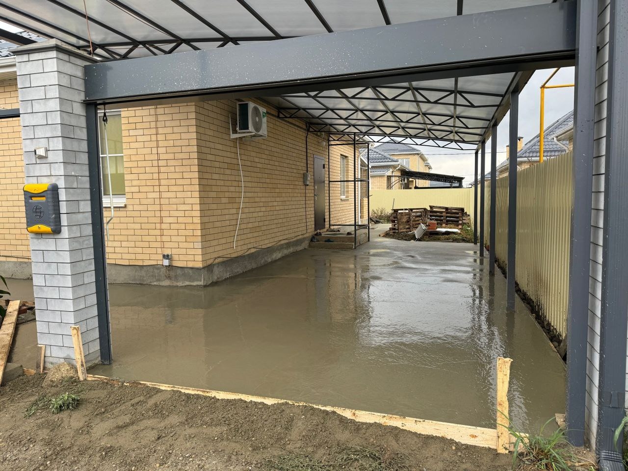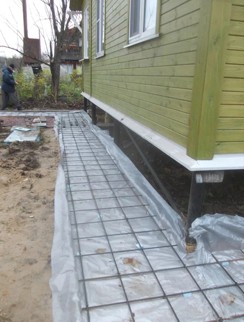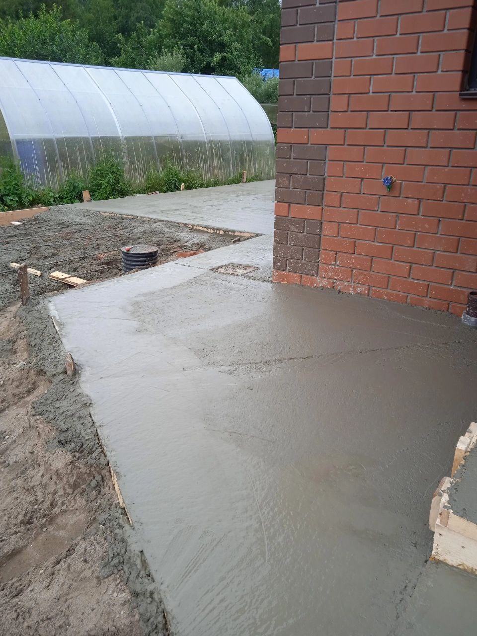 Также делаем фундаменты, площадку под машины - заезды, отмостка вокруг дома, дорожки.