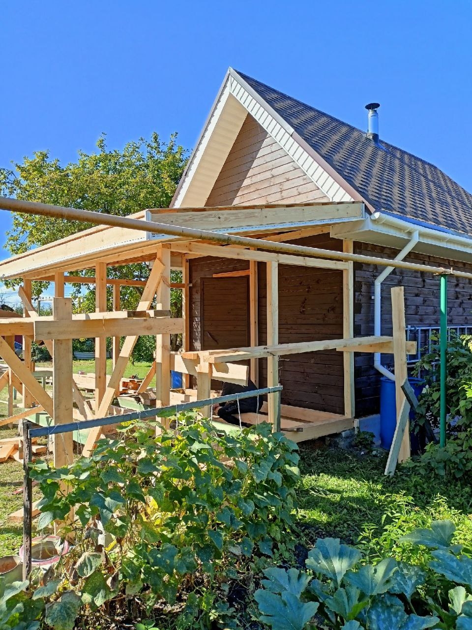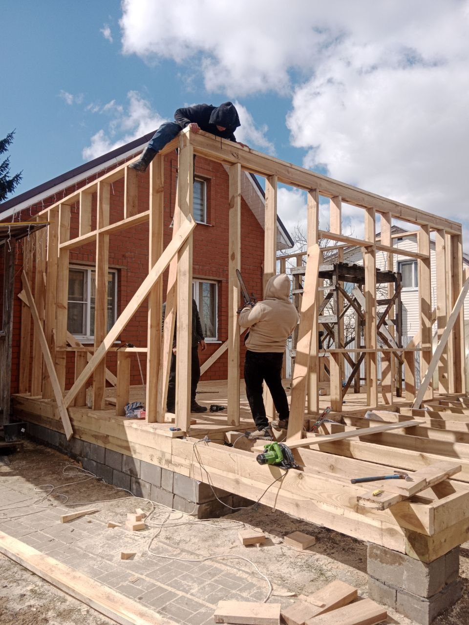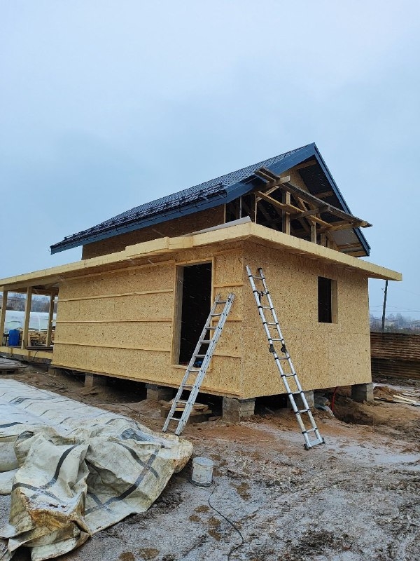 • Заливаем фундамент и возводим каркас со стенами